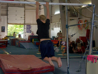 Here's a two-fer post - I found one more long hair set of photos, and after, you can see Jacob (he's the littlest in our family) doing gymnastics. I say it's for Mindy, because she's my gymnastics, flippy friend - who might be the only one to really appreaciate my little guy's potential. :)